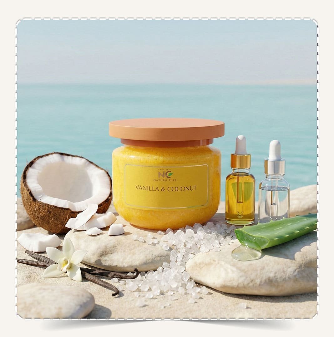 امنحي بشرتك لحظة دلال استوائية مع مقشر جسم طبيعي بزيت جوز الهند والفانيليا Natural Body Scrub Vanilla & Coconut من ناتشرال كير، تركيبة فاخرة تجمع بين أملاح البحر الميت الطبيعية والزيوت الطبيعية والرائحة الدافئة المنعشة لمزيج جوز الهند والفانيليا. يعمل هذا المقشر على إزالة الخلايا الميتة والشوائب بلطف بفضل أملاح البحر الميت، بينما يمنح مزيج الزيوت الطبيعية: زيت الجوجوبا – زيت اللوز – جل الألوفيرا، ترطيباً عميقاً وملمساً ناعماً ومخملياً يدوم طويلاً. رائحة جوز الهند والفانيليا تضيف إحساساً بالاسترخاء والدفء، لتجعلي روتين الاستحمام لحظة فاخرة تضيف نعومة وجاذبية للبشرة. إن مقشر جسم طبيعي بزيت جوز الهند والفانيليا Natural Body Scrub Vanilla & Coconut هو لمستك الخاصة لجمال دافئ ومشرق.